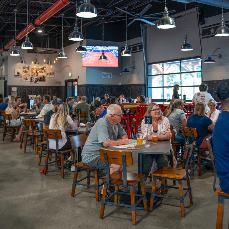 This brewery is like an adult playground. They have put-put golf outside along with go carts and batting cages. Inside and outside seating. Outside seating is dog friendly and has heaters for cold days. They offer a variety of foods when we went today they had brunch. Picture of menu attached. Beer menu is great. I tried their west coast IPA and loved the taste. Great atmosphere. Free parking lot outside.